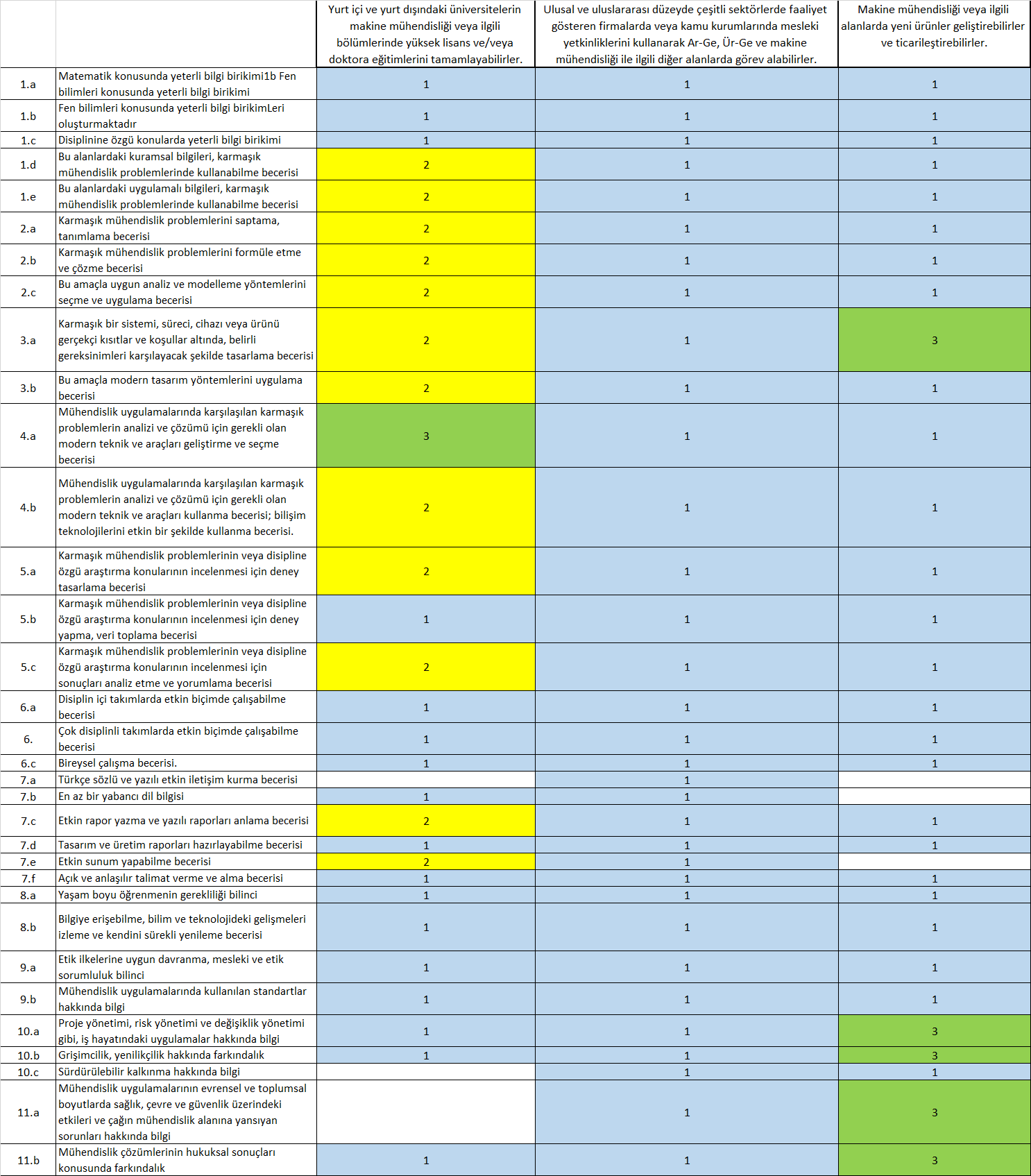 TYÇÇ-Program Çıktıları Matrisi